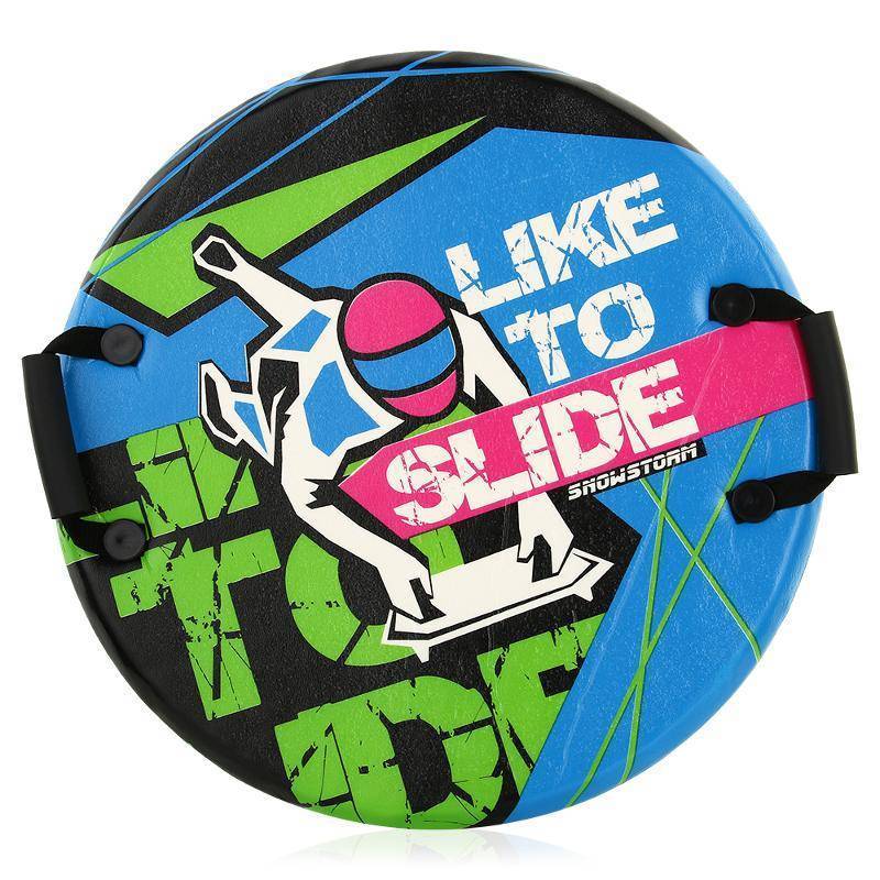 Стильная и яркая ледянка Like To Slide – это незаменимый аксессуар для ребенка в зимний сезон. Удобная и легкая ледянка отлично скользит, как по раскатанному льду, так и по снегу. Необычный дизайн с рисунком в стиле граффити обязательно понравится ребенку и привлечет внимание сверстников. Модель выполнена из вспененного полимерного материала, который выдерживает высокие ударные нагрузки и устойчив к истиранию. Материал выдерживает температурный режим до -25 градусов. Универсальный диаметр в 600 мм позволяет с комфортом размещаться ребенку, вытянув ноги при съезде с горки. Скатываться с горки на такой ледянке удобно сидя или лежа, немного приподняв или поджав под себя ноги. По бокам расположены две пластиковые ручки, которые добавляют безопасность во время катания и упрощают переноску во время отдыха. Особенности и преимущества: